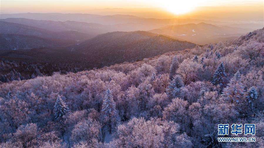這是在長白山林區(qū)拍攝的霧凇景色(2018年1月13日無人機拍攝)。新華社記者 許暢 攝