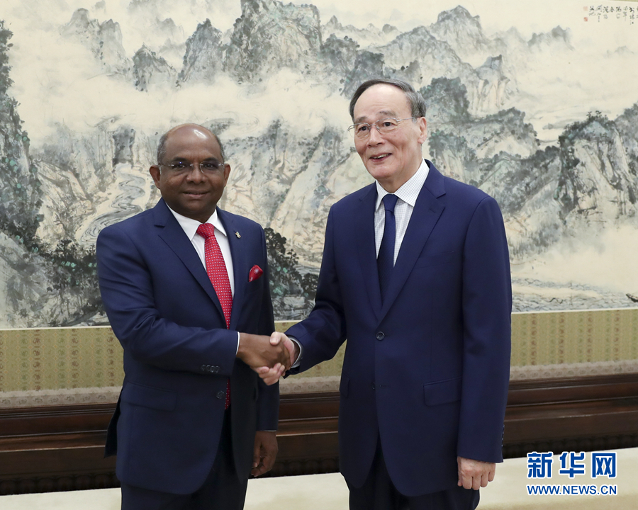 9月19日,國(guó)家副主席王岐山在北京中南海會(huì)見馬爾代夫外長(zhǎng)沙希德。 新華社記者 丁海濤 攝