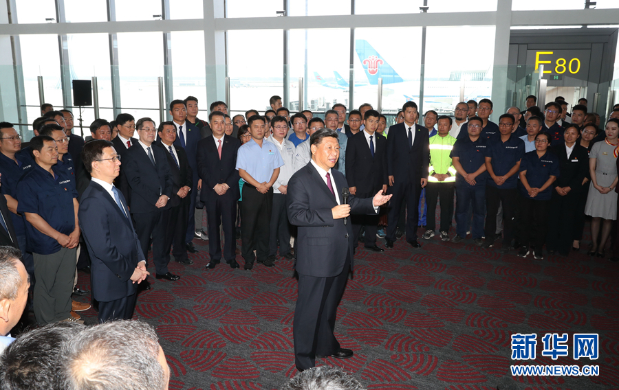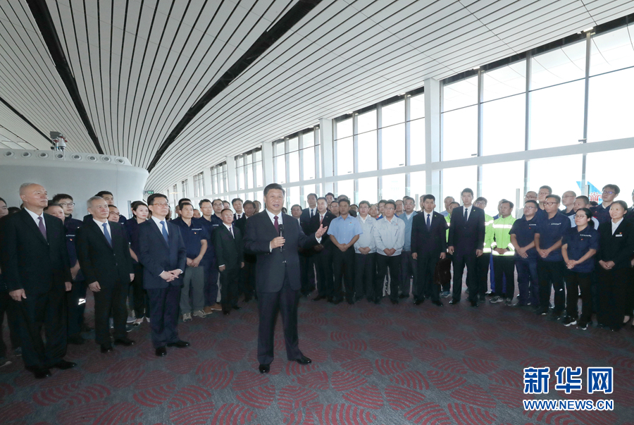 大興機場航站樓,是目前全球最大規(guī)模的單體航站樓,以其獨特的造型設(shè)計、精湛的施工工藝、便捷的交通組織、先進的技術(shù)應(yīng)用,創(chuàng)造了許多世界之最。航站樓里,流線型的空間結(jié)構(gòu)十分寬敞明亮。習(xí)近平步行巡覽站臺大廳和值機大廳,實地了解值機、安檢、登機和殘疾人無障礙設(shè)施等情況,并結(jié)合沙盤和模型聽取機場總體規(guī)劃、設(shè)施建設(shè)等介紹。習(xí)近平強調(diào),大興國際機場是首都的重大標志性工程,是推動京津冀協(xié)同發(fā)展的骨干工程。京津冀三地要抓住機遇加強協(xié)同合作,加快推動地區(qū)高質(zhì)量發(fā)展。民航業(yè)是國家重要的戰(zhàn)略產(chǎn)業(yè)。要建設(shè)更多更先進的航空樞紐、更完善的綜合交通運輸系統(tǒng),加快建設(shè)交通強國。