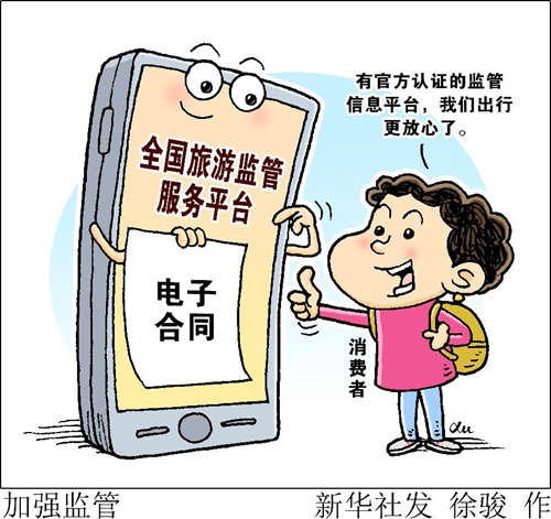 “我剛給全家人從旅行社訂了跟團游,就收到了提醒簽約旅游電子合同的短信。有官方認證的監(jiān)管信息平臺,我們出行更放心了?!鄙虾J忻穹节S梅說,家人和朋友對納入“全國旅游監(jiān)管服務平臺”的電子合同頻頻點贊。