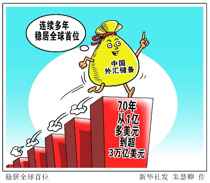 新華社北京9月27日電(記者劉開雄)從1億多美元到超3萬億美元,從新中國成立之初的捉襟見肘到如今占全球總規(guī)模近三分之一——70年,伴隨著中國經(jīng)濟(jì)的發(fā)展與騰飛,中國外匯儲備不斷創(chuàng)造輝煌。據(jù)國家外匯管理局最新數(shù)據(jù),截至2019年8月末,中國外匯儲備規(guī)模達(dá)31072億美元,連續(xù)多年穩(wěn)居全球首位。