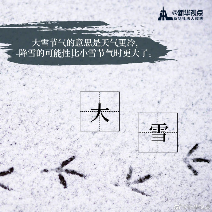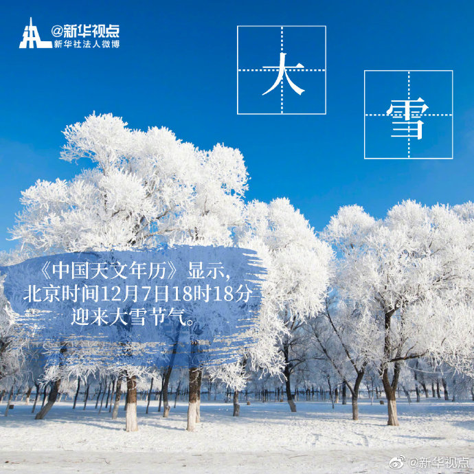 “白雪紛紛何所似?未若柳絮因風起?!苯裉?8時18分迎來“大雪”節(jié)氣。相較于“小雪”節(jié)氣,“大雪”節(jié)氣時,氣溫不斷下降,雪量不斷增大,下雪天數(shù)不斷增加。天氣漸冷,注意添衣保暖。?