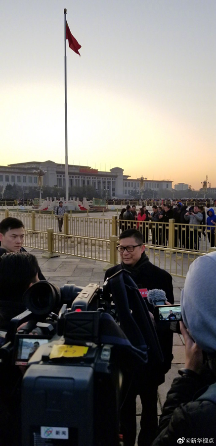12月7日清晨,香港特區(qū)政府警務(wù)處處長鄧炳強一行來到天安門廣場觀看升旗儀式。(記者孫少龍) ????