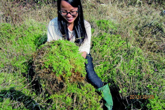 2013年10月26日,劉玲在山坳里采野生水苔。受訪(fǎng)者供圖