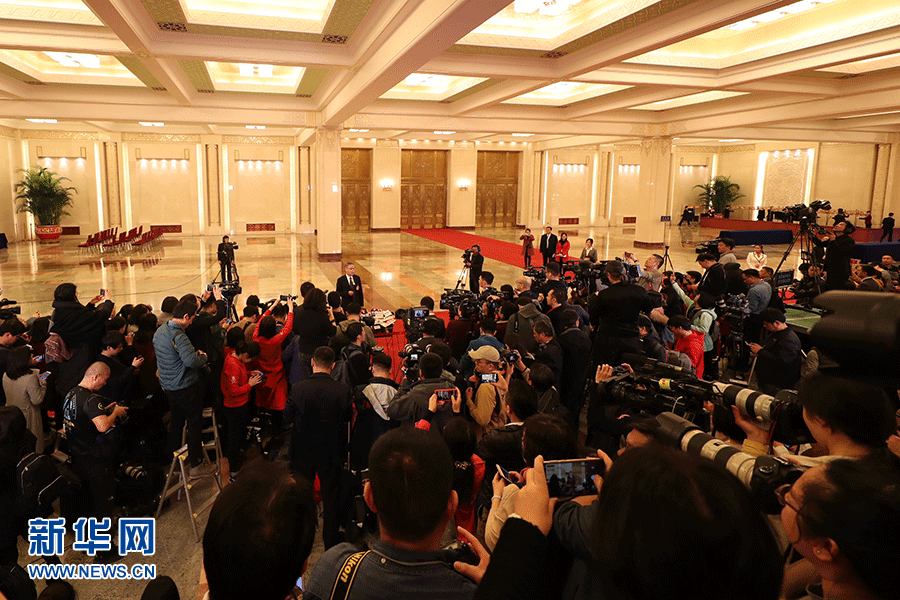 3月5日,第十三屆全國(guó)人民代表大會(huì)第二次會(huì)議在北京人民大會(huì)堂開幕。這是記者在“部長(zhǎng)通道”采訪。新華網(wǎng)/中國(guó)政府網(wǎng) 劉廈攝