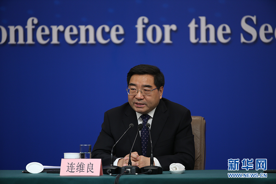 十三屆全國人大二次會議新聞中心于3月6日(星期三)上午10時在梅地亞中心新聞發(fā)布廳舉行記者會,邀請國家發(fā)展改革委主任何立峰,副主任寧吉喆、連維良就“大力推動經(jīng)濟高質(zhì)量發(fā)展”相關(guān)問題回答中外記者的提問。圖為連維良回答記者提問。新華網(wǎng)/中國政府網(wǎng) 劉廈 攝