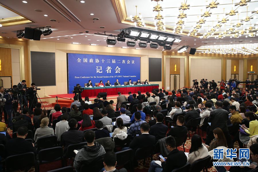 全國政協(xié)十三屆二次會議3月6日下午在梅地亞兩會新聞中心舉行記者會,邀請5位全國政協(xié)委員就“優(yōu)化營商環(huán)境、促進(jìn)民營經(jīng)濟高質(zhì)量發(fā)展”回答記者提問。圖為記者會現(xiàn)場。新華網(wǎng)/中國政府網(wǎng) 劉廈 攝