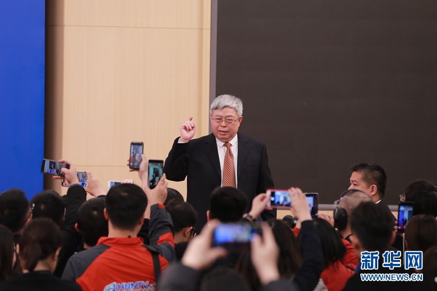 十三屆全國(guó)人大二次會(huì)議新聞中心于3月7日10時(shí)50分在梅地亞中心新聞發(fā)布廳舉行記者會(huì),邀請(qǐng)國(guó)務(wù)院扶貧開(kāi)發(fā)領(lǐng)導(dǎo)小組辦公室主任劉永富就“攻堅(jiān)克難——堅(jiān)決打贏脫貧攻堅(jiān)戰(zhàn)”相關(guān)問(wèn)題回答中外記者提問(wèn)。圖為記者會(huì)結(jié)束后劉永富與記者們交流。新華網(wǎng)?劉廈 攝