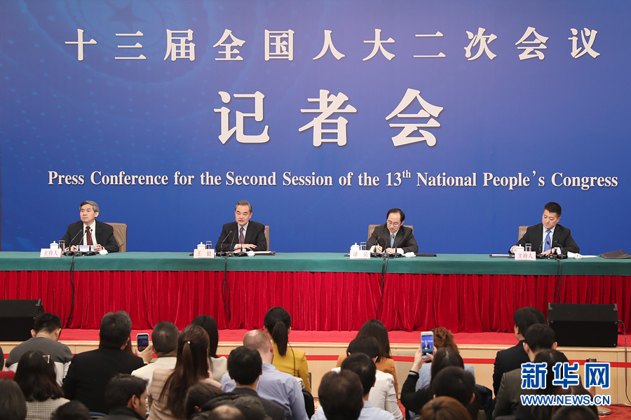十三屆全國人大二次會議新聞中心3月8日10時(shí)在梅地亞中心新聞發(fā)布廳舉行記者會,邀請國務(wù)委員兼外交部長王毅就“中國外交政策和對外關(guān)系”相關(guān)問題回答中外記者提問。圖為王毅回答記者提問。新華網(wǎng)/中國政府網(wǎng)?陳杰 攝