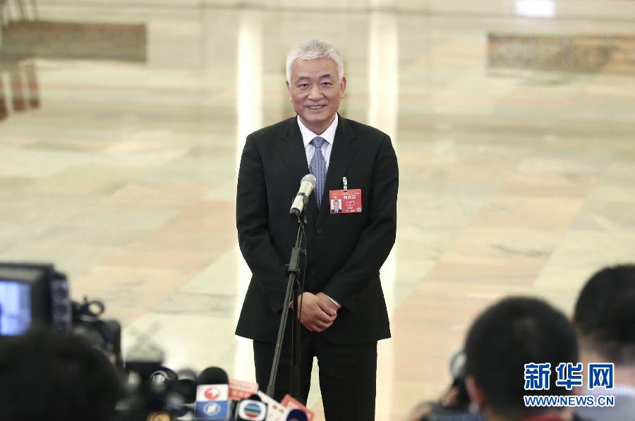 3月8日,十三屆全國人大二次會議在北京人民大會堂舉行第二次全體會議。這是科學技術(shù)部部長王志剛在“部長通道”接受采訪。新華社記者 金立旺 攝