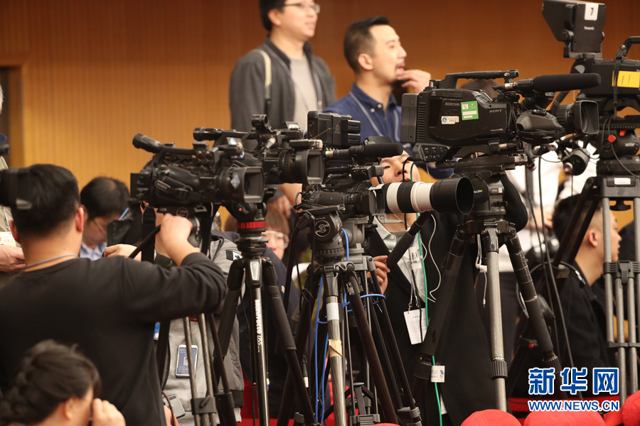 十三屆全國人大二次會議新聞中心3月8日10時在梅地亞中心新聞發(fā)布廳舉行記者會,邀請國務(wù)委員兼外交部長王毅就“中國外交政策和對外關(guān)系”相關(guān)問題回答中外記者提問。圖為記者在現(xiàn)場準(zhǔn)備。新華網(wǎng)/中國政府網(wǎng) 陳杰 攝