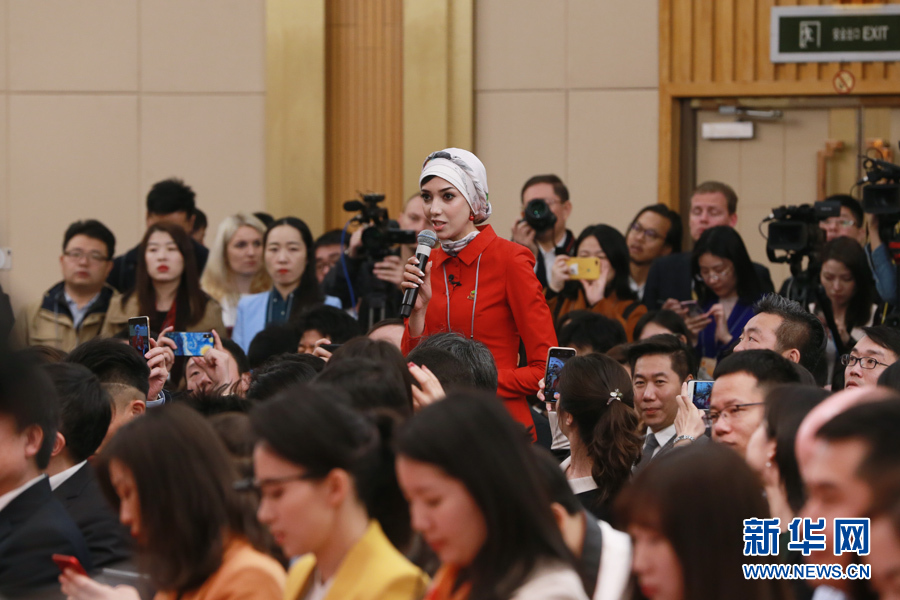 十三屆全國(guó)人大二次會(huì)議新聞中心3月8日10時(shí)在梅地亞中心新聞發(fā)布廳舉行記者會(huì),邀請(qǐng)國(guó)務(wù)委員兼外交部長(zhǎng)王毅就“中國(guó)外交政策和對(duì)外關(guān)系”相關(guān)問(wèn)題回答中外記者提問(wèn)。圖為中阿衛(wèi)視記者。新華網(wǎng)/中國(guó)政府網(wǎng) 馬娟 攝