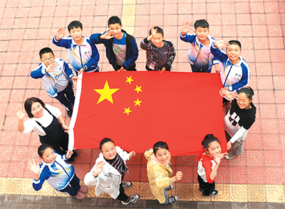 新中國成立70周年之際,河南武陟縣黨員干部走進校園,帶領(lǐng)學(xué)生開展國旗教育。