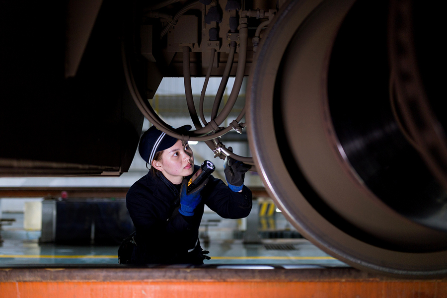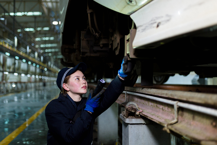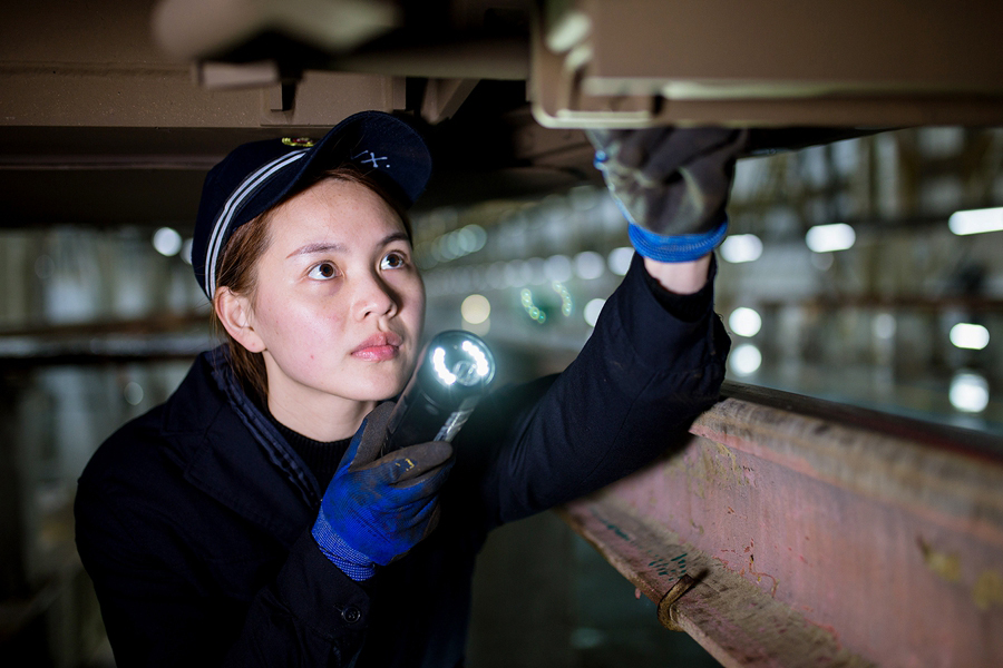 “我們這個(gè)崗位最重要的是細(xì)心,車底螺絲是否移位、電纜接頭是否松動(dòng),不敢放過一個(gè)細(xì)節(jié),比如說動(dòng)車底盤的天線,遇到北方冰凍雨雪天氣時(shí),易被冰塊砸出裂紋,如沒及時(shí)發(fā)現(xiàn),將會(huì)對列車信息傳輸造成直接影響?!毕蚰钫f。