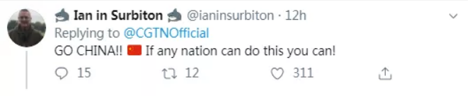 “如果有任何一個(gè)國(guó)家可以做到,那就是你們了!中國(guó)加油??!”
