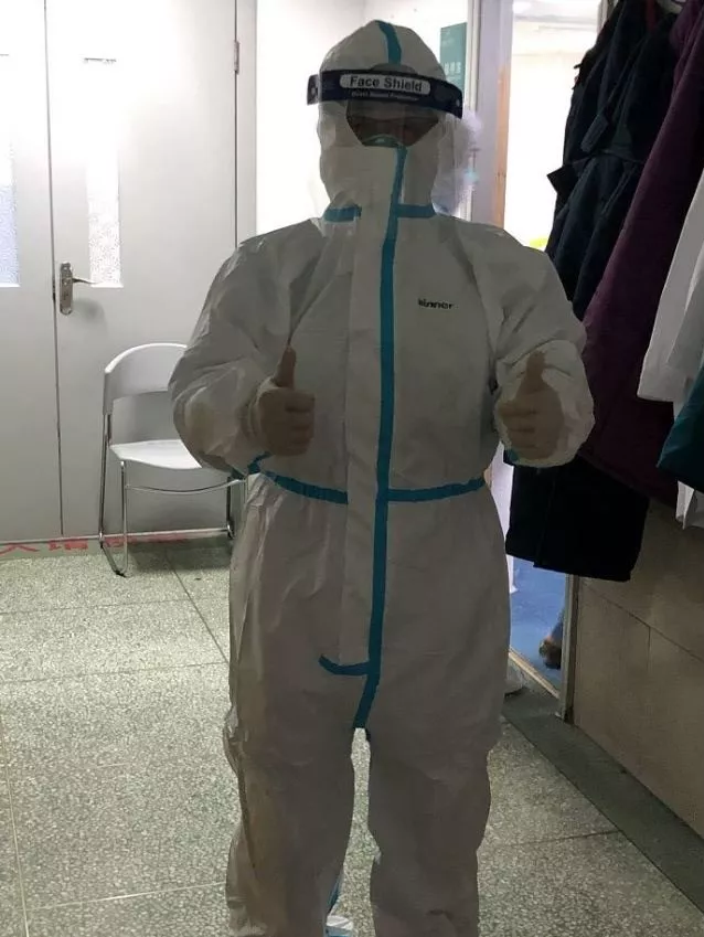 童朝暉身著防護(hù)服。