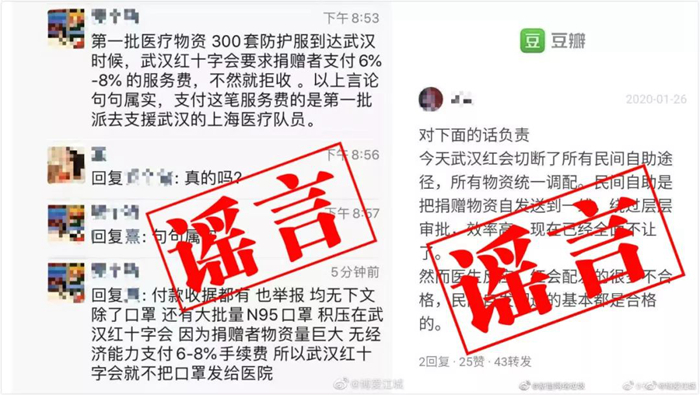 武漢市紅十字會(huì)呼吁廣大網(wǎng)友,不要讓謠言玷污了各界愛(ài)心企業(yè)和愛(ài)心人士的善意之舉,疫情面前,不信謠、不傳謠,眾志成城,共渡難關(guān)。