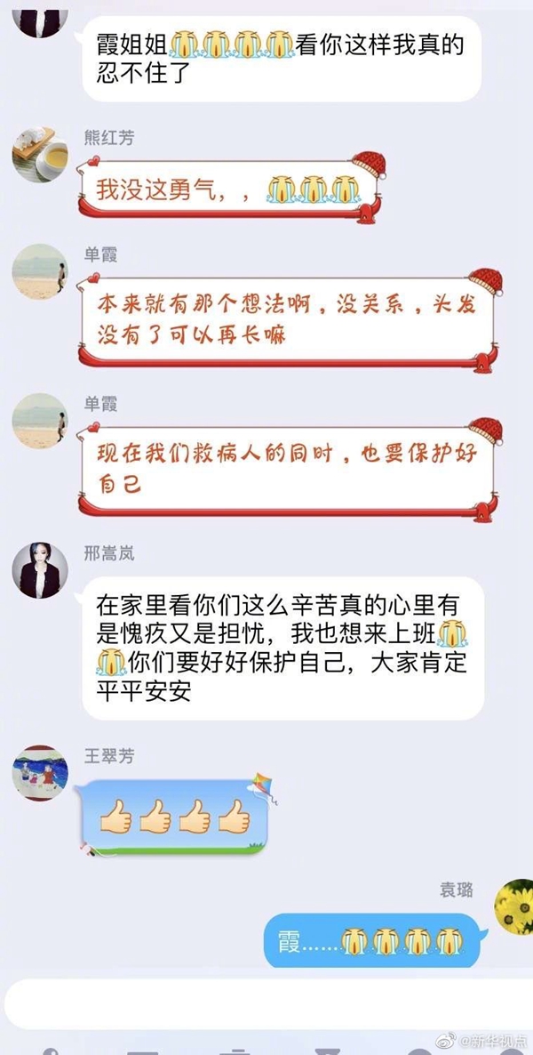為了避免交叉感染,也為了節(jié)約穿脫防護(hù)衣帽的時(shí)間,兩個(gè)孩子的母親、武漢大學(xué)人民醫(yī)院東院區(qū)神經(jīng)內(nèi)科90后護(hù)士單霞,投入了抗擊疫情的一線。她毅然剪掉了自己的長(zhǎng)發(fā),“光頭以明志”。她說(shuō):“頭發(fā)沒(méi)有了還可以再長(zhǎng),現(xiàn)在的首要問(wèn)題是保護(hù)好自己的同時(shí),盡力量去救更多人?!保ㄓ浾呃璨?、胡喆)