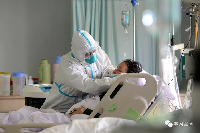1月27日上午,海軍軍醫(yī)大學(xué)醫(yī)療隊(duì)醫(yī)護(hù)人員在漢口醫(yī)院重癥監(jiān)護(hù)室對(duì)新型冠狀病毒感染的肺炎患者進(jìn)行救治。醫(yī)護(hù)人員精心護(hù)理患者。解放軍報(bào)記者范顯海攝