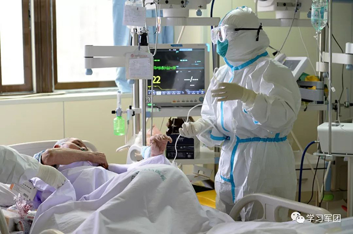 1月27日上午,海軍軍醫(yī)大學(xué)醫(yī)療隊(duì)醫(yī)護(hù)人員在漢口醫(yī)院重癥監(jiān)護(hù)室對(duì)新型冠狀病毒感染的肺炎患者進(jìn)行救治。醫(yī)護(hù)人員加強(qiáng)巡視,觀察輸液滴數(shù)。解放軍報(bào)記者范顯海攝