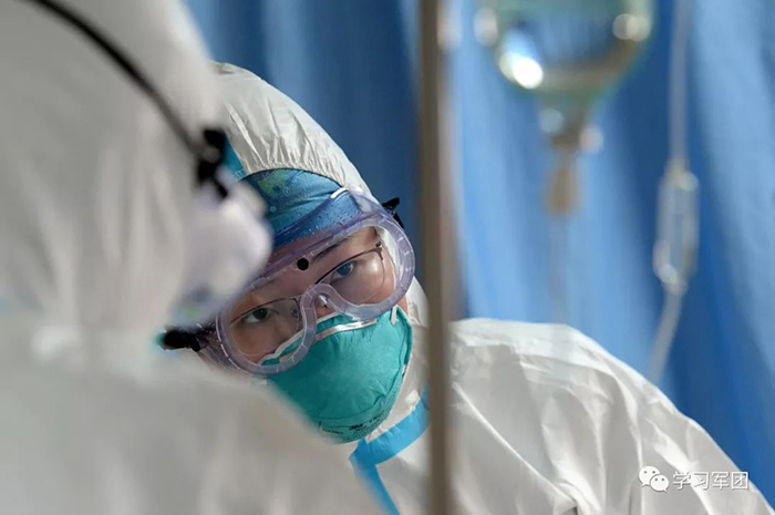 1月27日上午,海軍軍醫(yī)大學(xué)醫(yī)療隊(duì)醫(yī)護(hù)人員在漢口醫(yī)院重癥監(jiān)護(hù)室對(duì)新型冠狀病毒感染的肺炎患者進(jìn)行救治。醫(yī)護(hù)人員密切關(guān)注患者病情,根據(jù)變化調(diào)整輸液速度。解放軍報(bào)記者范顯海攝