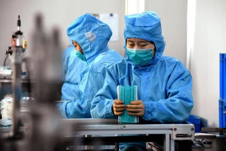1月28日,工人在河北定州市一家口罩生產(chǎn)企業(yè)車(chē)間工作。連日來(lái),河北省定州市口罩生產(chǎn)企業(yè)召回員工加班加點(diǎn)生產(chǎn)口罩,助力防控新型冠狀病毒感染的肺炎疫情。