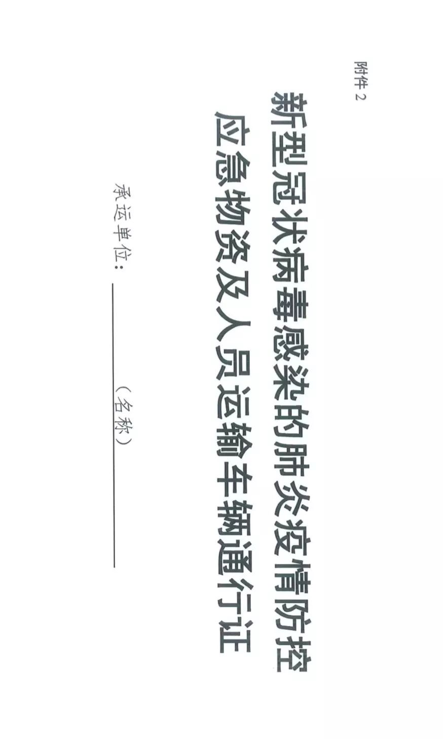 2 《新型冠狀病毒感染的肺炎疫情防控物資及人員運(yùn)輸車輛通行證》式樣