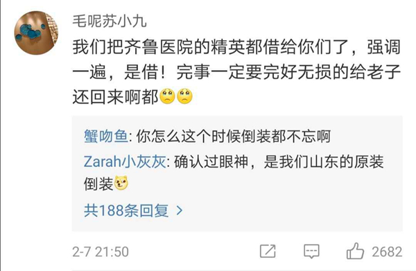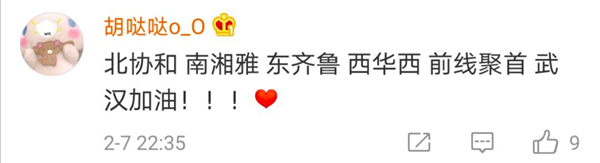 有網(wǎng)友表示,北協(xié)和、南湘雅、東齊魯、西華西,中國醫(yī)療界最頂尖的王炸帶上各省份的天團會師武漢!今天看到最戳心的一句話是:全村的龍已把最硬的麟給你,哪怕自己也傷痕累累,所以,武漢,加油!