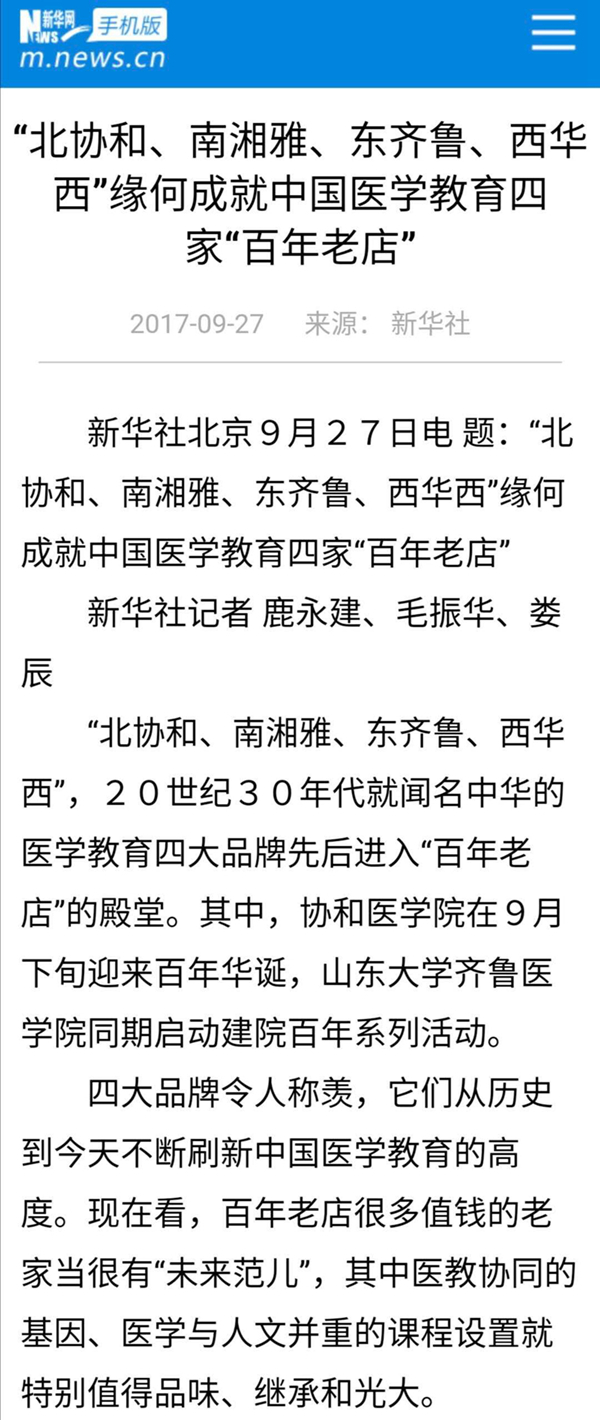新華社有篇報道把它們稱為中國醫(yī)學(xué)教育四家“百年老店”,是20世紀(jì)30年代就聞名中華的醫(yī)學(xué)教育四大品牌。它們從歷史到今天不斷刷新中國醫(yī)學(xué)教育的高度。↓↓↓