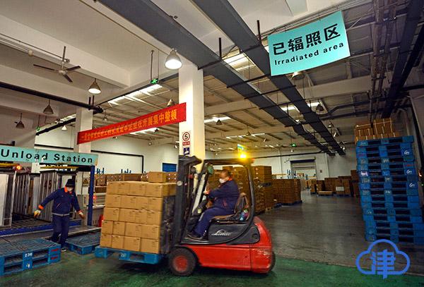 下午4點半,記者來到新區(qū)的另一家復工企業(yè)——天津金鵬源輻照技術有限公司。在輻照車間調度室,生產部兩位值班主任錢寧勇和趙志強正在交班,監(jiān)控系統屏幕上數據不停跳動,實時顯示每一拖箱貨物輻照殺菌的進程狀態(tài)。