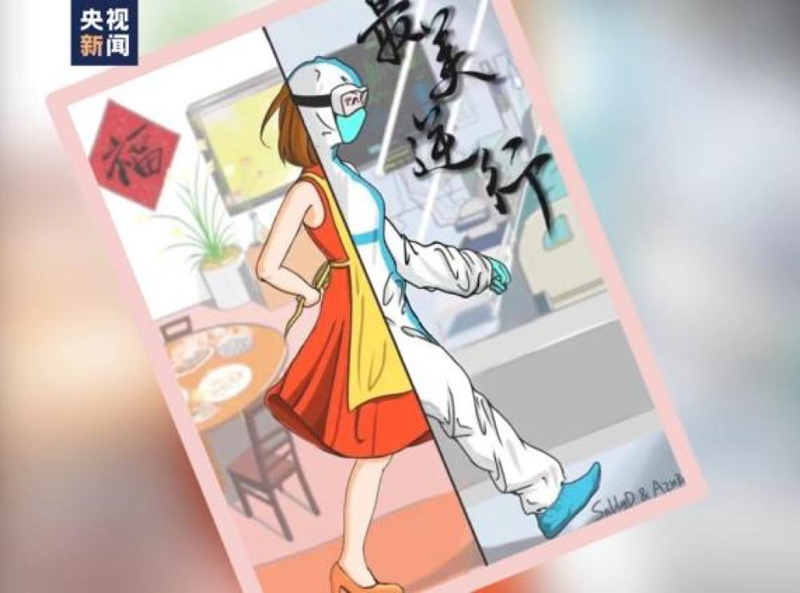 設(shè)計(jì)師董思喬的母親,是北京大學(xué)人民醫(yī)院的一名醫(yī)務(wù)工作者。在董思喬七歲那年,正逢非典暴發(fā),她的母親堅(jiān)守崗位留在醫(yī)院救治患者。十七年后,新冠肺炎來(lái)襲,她看到很多醫(yī)務(wù)工作者也像當(dāng)年她的母親一樣在最危險(xiǎn)的地方戰(zhàn)斗,義無(wú)反顧,馳援武漢。于是,她拿出畫(huà)筆畫(huà)出她心中醫(yī)務(wù)工作者們最美的樣子:“身后,是飄香的飯菜,是溫馨的家;面前,是防疫一線,是需要救治的患者。逆行者們,愿你們平安歸來(lái)?!?/p>