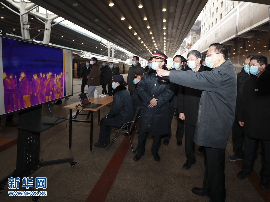 2月14日,中共中央政治局常委、國務(wù)院總理、中央應(yīng)對新冠肺炎疫情工作領(lǐng)導(dǎo)小組組長李克強(qiáng)赴北京西站考察有序錯峰返程和新冠肺炎疫情防控工作。 這是李克強(qiáng)察看車站紅外測溫設(shè)施運行情況。 新華社記者 丁林 攝