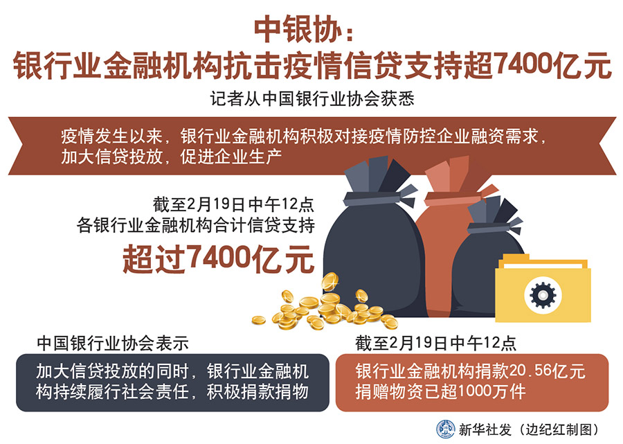 新華社北京2月20日電(記者李延霞)記者從中國銀行業(yè)協(xié)會(huì)獲悉,疫情發(fā)生以來,銀行業(yè)金融機(jī)構(gòu)積極對(duì)接疫情防控企業(yè)融資需求,加大信貸投放,促進(jìn)企業(yè)生產(chǎn)。截至2月19日中午12點(diǎn),各銀行業(yè)金融機(jī)構(gòu)合計(jì)信貸支持超過7400億元。