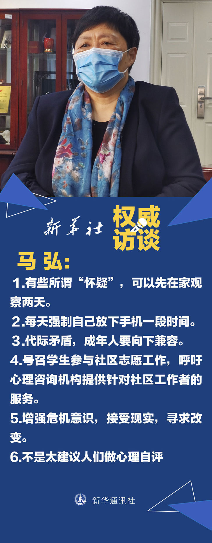 針對(duì)這些問(wèn)題,國(guó)家衛(wèi)健委醫(yī)療專家組成員、北京大學(xué)第六醫(yī)院教授、心理衛(wèi)生學(xué)家馬弘接受了新華社記者獨(dú)家專訪,結(jié)合SARS時(shí)期心理危機(jī)干預(yù)經(jīng)驗(yàn),回答了如何應(yīng)對(duì)疫后心理創(chuàng)傷。
