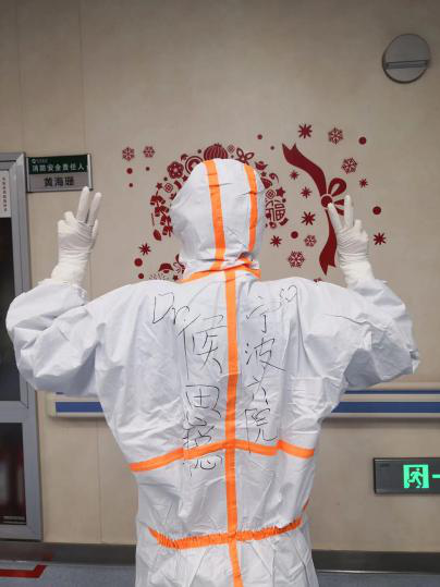屠應(yīng)超收到侯思聰發(fā)來(lái)的穿上防護(hù)服的照片。受訪者供圖