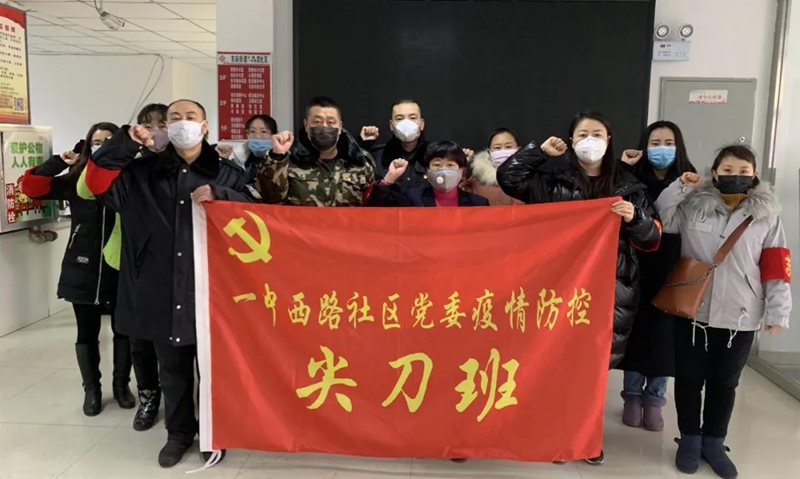 滕逸鶴帶領社區(qū)黨委疫情防控尖刀班宣誓。圖片來源:今日東河