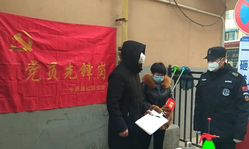 滕逸鶴在社區(qū)疫情防控一線值守。圖片來源:今日東河