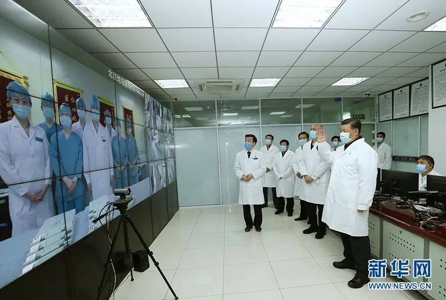 2月10日,習(xí)近平來(lái)到首都醫(yī)科大學(xué)附屬北京地壇醫(yī)院門診樓一層運(yùn)行監(jiān)控中心,通過(guò)監(jiān)控畫面察看患者住院診療情況,并視頻連線正在病房值班的醫(yī)務(wù)人員。