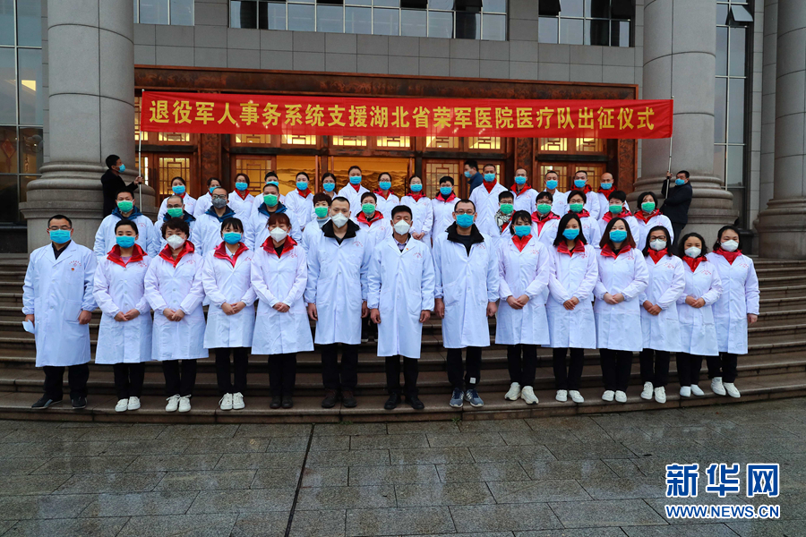 2月11日,退役軍人事務部組建首支醫(yī)療隊馳援湖北省榮軍醫(yī)院。這是出征儀式現(xiàn)場。新華社發(fā)(曹舒昊 攝)