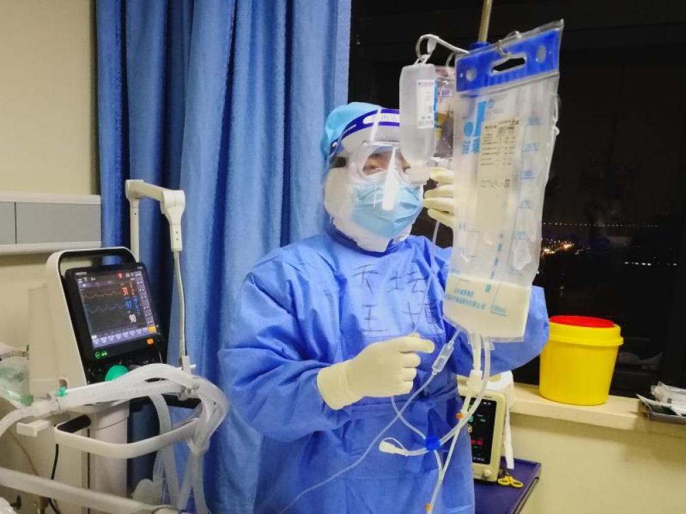 沒有時(shí)間坐下來,緊接著需要檢查各個(gè)儀器運(yùn)轉(zhuǎn)是否正常、管路連接是否完好,最后幫患者擦拭了身體,保持患者皮膚清潔干燥是我們護(hù)理的要求。自己又是一身汗,我覺得防護(hù)服里面的衣服已經(jīng)貼在了身上。