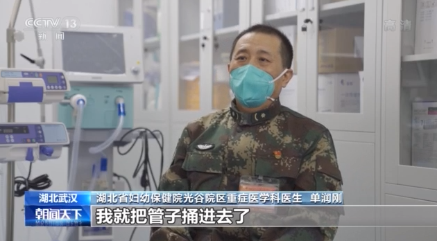 湖北省婦幼保健院光谷院區(qū)重癥醫(yī)學(xué)科醫(yī)生、危重癥患者救治突擊隊(duì)隊(duì)員 單潤剛:我們在吸氣的時候,聲門會變大,變大那一瞬間我就把管子插進(jìn)去了,也就零點(diǎn)幾秒,不到一秒鐘。