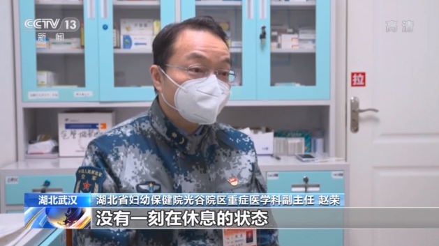 湖北省婦幼保健院光谷院區(qū)重癥醫(yī)學(xué)科副主任 趙榮:他隨時都有可能處在一種搶救狀態(tài),一個班4個醫(yī)生6個護(hù)士,甚至要6個護(hù)士進(jìn)紅區(qū),大家從進(jìn)來到出去沒有一刻在休息。