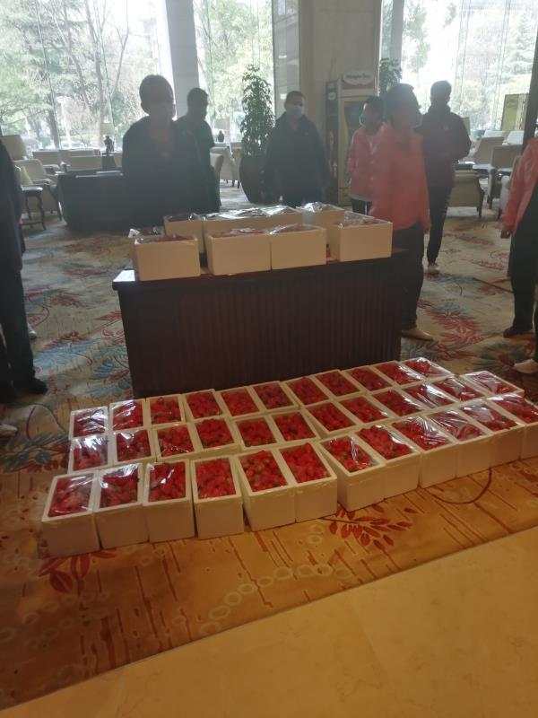 據(jù)前來送草莓的康復患者稱,這些草莓是江岸方艙醫(yī)院64名病友花費了1.6萬元購買送給河北的醫(yī)護人員。為了保證草莓的新鮮,武漢當?shù)剞r(nóng)民從凌晨3點就開始采摘?!斑@是我們的一點心意,如果不是你們的幫助,單靠武漢的醫(yī)務人員確實是挺不住的,很感謝你們從全國各地來幫助我們,這次疫情來的很突然,我的母親也因病毒感染去世。小家的母親走了,但是你們卻拯救了武漢這個大家。非常感謝你們。希望大家把這點心意和問候帶回河北,同時也希望大家一路平安,感謝你們對我們武漢的很大幫助。謝謝大家!”