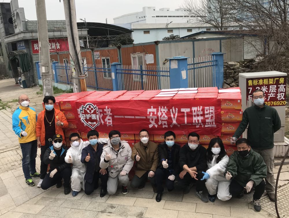 到現(xiàn)在也不知道這些志同道合的伙伴們都是什么人,大家都在埋頭按指令干活,無暇寒暄。隊(duì)里有幾個(gè)年輕人,玩命地奔忙在各個(gè)貨運(yùn)倉(cāng)庫(kù)。就像那天的40噸酒精,完全靠他們扛上扛下,再送到一個(gè)個(gè)物資告急的機(jī)構(gòu)手中。