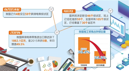2019年,我國跨境電商零售進(jìn)出口額達(dá)到了1862.1億元,是2015年的5倍,年均增速49.5%,綜試區(qū)在外貿(mào)發(fā)展中的作用也日益凸顯。