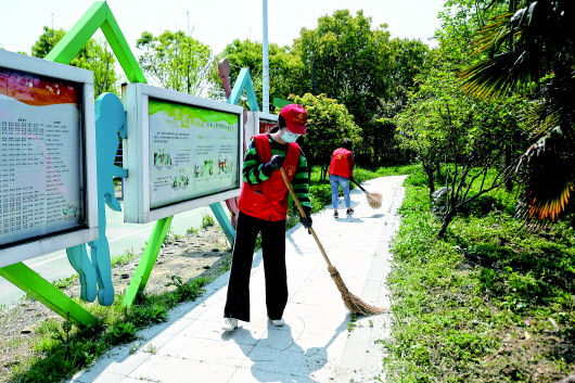 ▲4月9日,南潯區(qū)石淙鎮(zhèn)志愿者在花園灣村進(jìn)行衛(wèi)生大掃除。?新華社記者黃宗治攝
