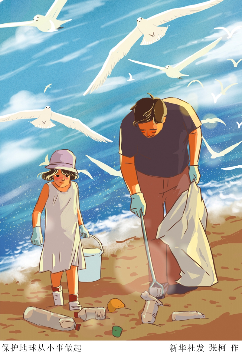 插畫:保護(hù)地球從小事做起 新華社發(fā) 張柯 作