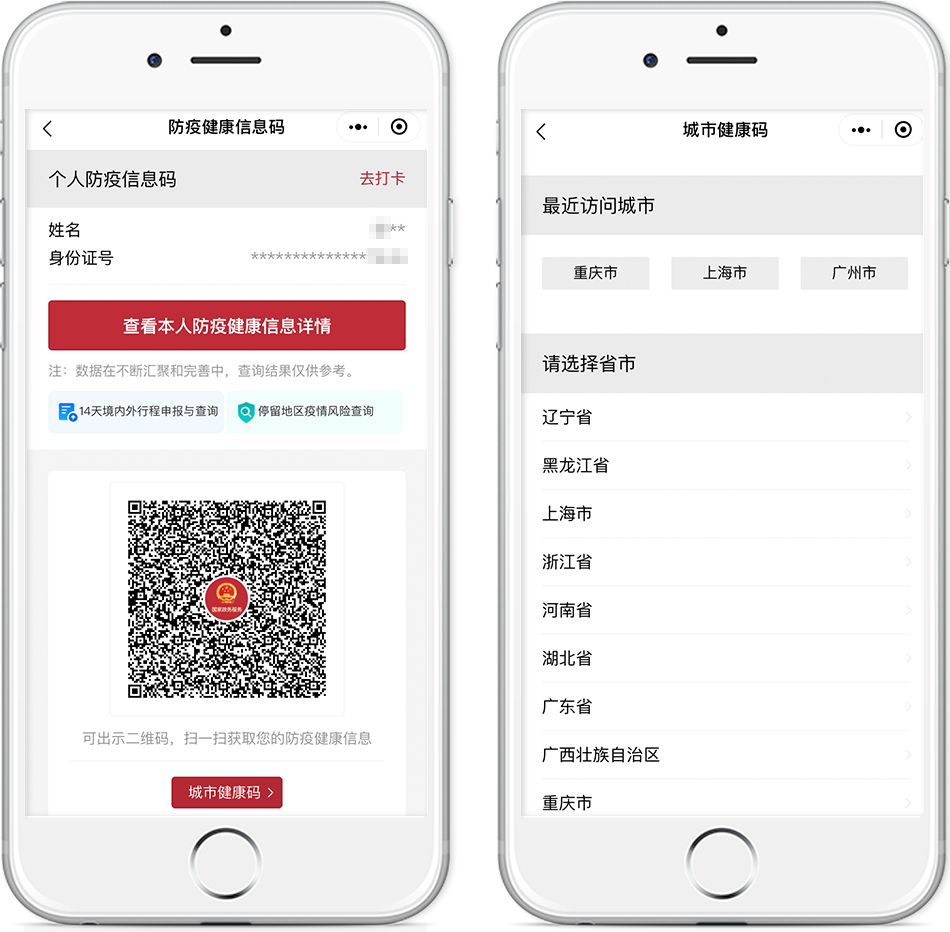 “防疫健康信息碼”為你的跨省出行保駕護航,關聯(lián)全國31個?。▍^(qū)、市)及新疆生產(chǎn)建設兵團防疫“健康碼”信息,實現(xiàn)了信息共享和互通互認,全國絕大部分地區(qū)可“一碼通行”。
