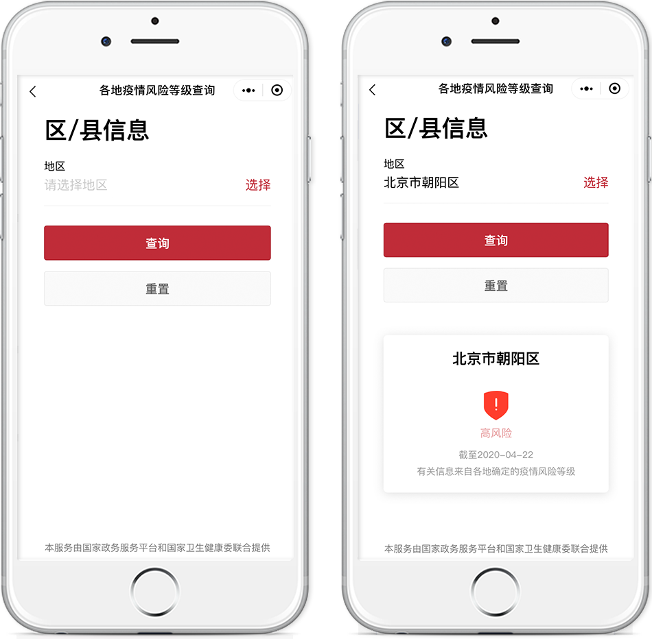 出行前,你可以用此服務查詢你所在地和目的地的疫情風險等級。該服務根據(jù)國家衛(wèi)生健康委數(shù)據(jù)進行動態(tài)更新,只需簡單輸入地區(qū)即可查詢。