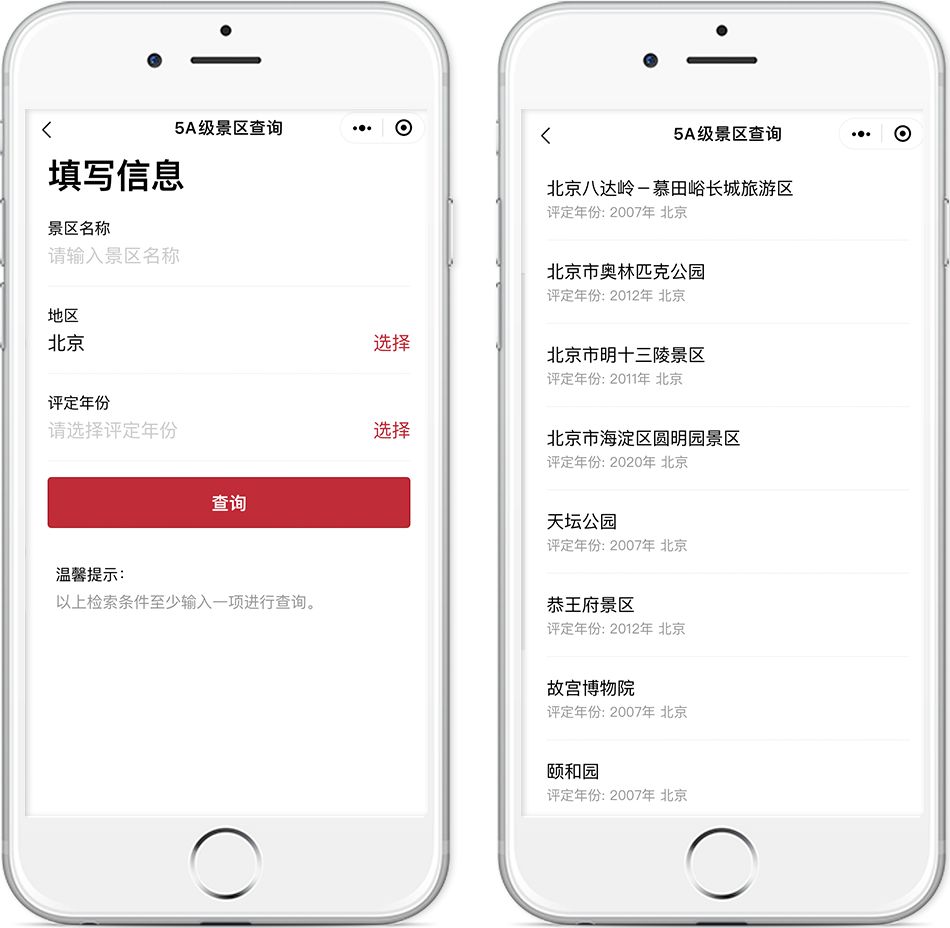 進入服務后,只需選擇出行地區(qū),即可查詢該地區(qū)所有5A級景區(qū),方便大家快速查找熱門景點,為你的出行提供參考。